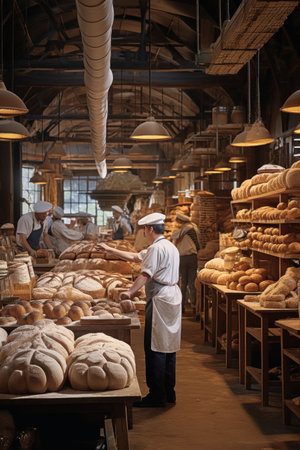 A bustling bakery factory filled with the delicious aroma of freshly baked bread and pastries AI generated