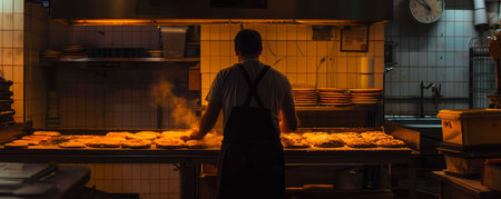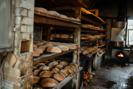 Rows of ovens emitting warmth and the sound of crackling dough AI generated