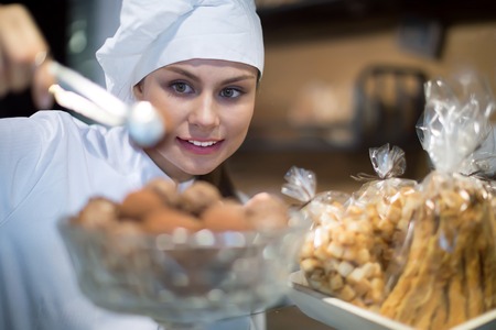 Portrait of a professional female chef preparing and baking delicious cakes in a modern kitchen