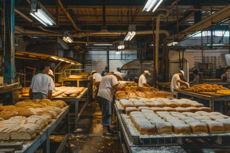 A bustling bakery factory filled with the delicious aroma of freshly baked bread and pastries AI generated