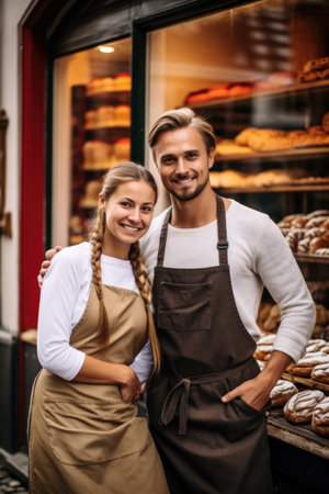 Capture the joy of being a baker and shop owner. An authentic image showing a passion for baking. Ideal for bakery websites or marketing materials.