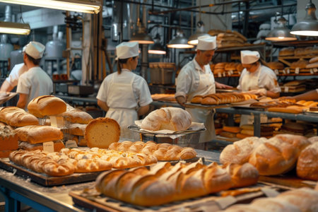 A bustling bakery factory filled with the delicious aroma of freshly baked bread and pastries AI generated
