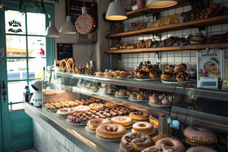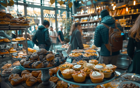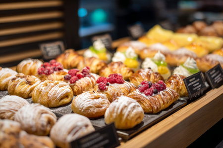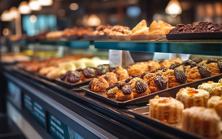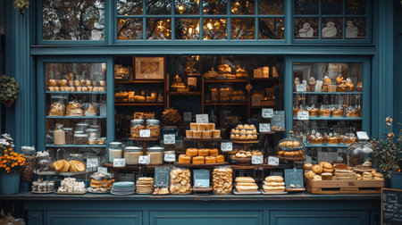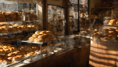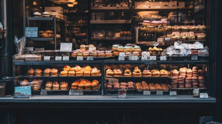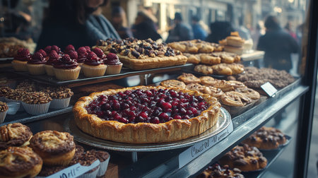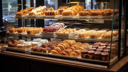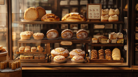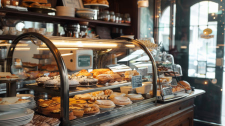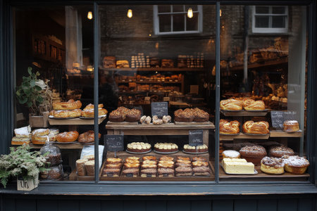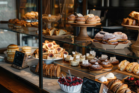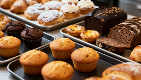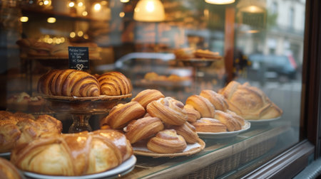 Baked goods display cozy bakery food photography urban environment front view culinary artistry for seo impact