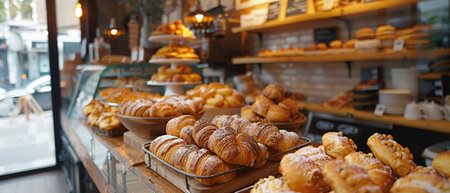 Bakery shop with variety of fresh pastries and croissants