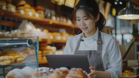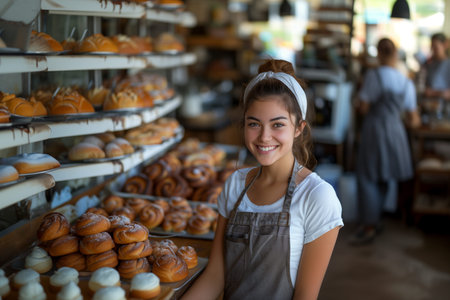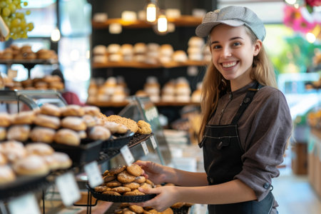 beautiful female baker working in bakery shop