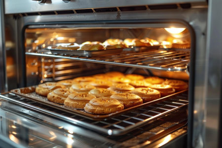 large scale oven baking hundreds of cookies automatically, created with generative ai