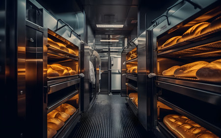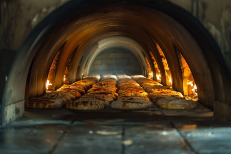Rows of ovens emitting warmth and the sound of crackling dough AI generated