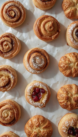 Elegant Knolling Display of Assorted Pastries for Bakery Design, Poster, and Print Use