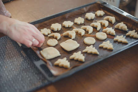 Close up of woman's hands making cookies in the kitchen at home