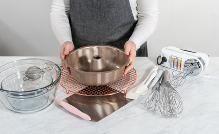 Kitchen tools for baking bundt cakes on the kitchen counter.