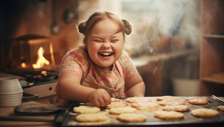 Down syndrome persona, resilience and positivity, radiant joy, genuine smile