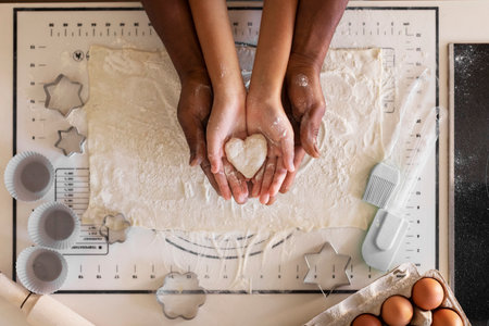 Above Shot Of Black Father And Daughter Holding Heart Made Of Dough