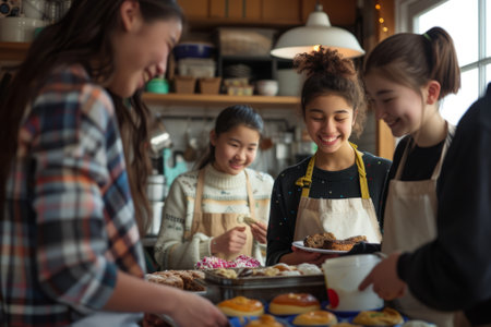 A group of teenagers organizing a bake sale to fundraise for a local food charity, showcasing youth activism and generosity.