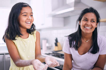 Were happiest when were in the kitchen. Cropped shot of an adorable little girl baking at home with her mother.