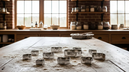A gingerbread day baking tools with wooden cookie cutters and rolling pin on marble surface ready for festive treats and joyful moments