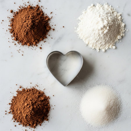 Cocoa powder in the form of a heart and cocoa powder.