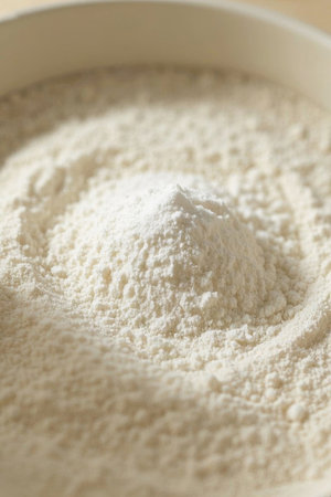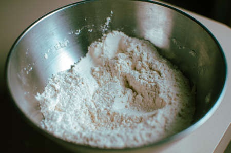 Close up of white flour in a bowl