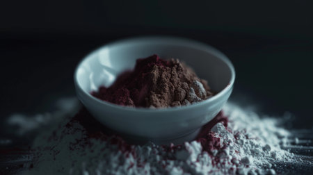 White bowl filled with red powder on table