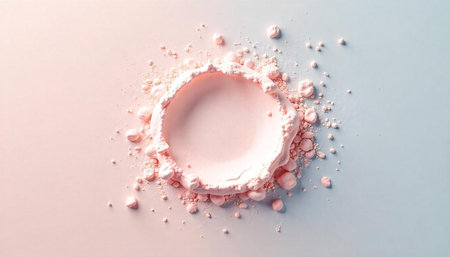 Abstract pastel pink circle with powdery texture on gradient background