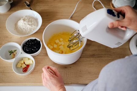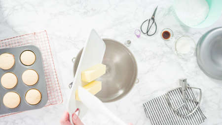 Step by step. Mixing ingredients for vanilla cupcakes.