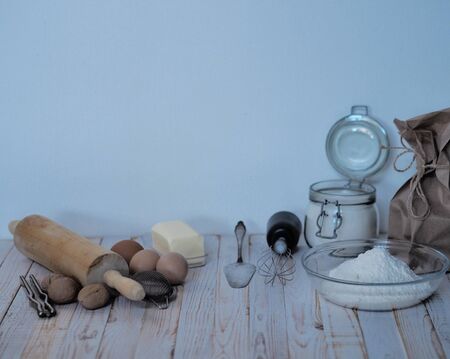 Ingredients for flour products or dessert. Cooking Cupcakes. Rural or rustic style.
