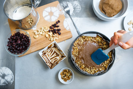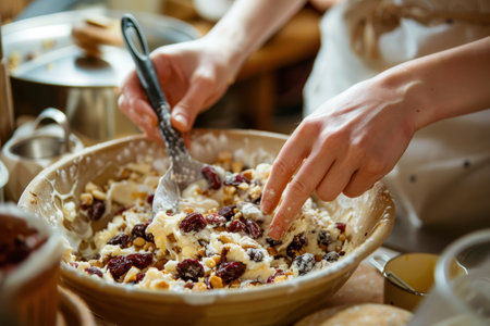 Baking Ritual: Mixing Dried Fruits into Cake Batter for a Festive Treat
