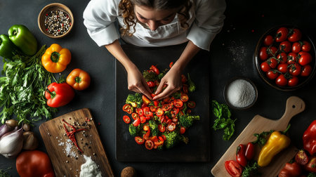 Preparing fresh vegetables in a kitchen for a healthy meal with vibrant colors and textures
