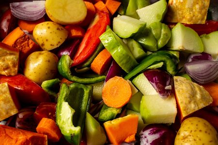 Vegetables of vibrant colors cut. Organic vegetables cut for cooking. Mix of food for vegetarians and vegans. Healthy food.