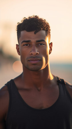 Generative AI : Portrait of an handsome athletic african man at the beach black people concept about people and sport