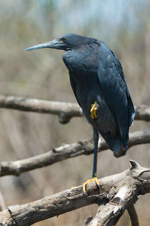 A Black Egret Egretta ardesiaca standing on one leg