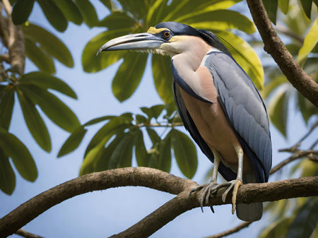 Boat billed heron sitting in the branches of a tree