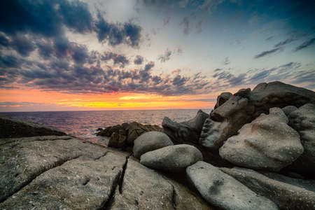 Beautiful perspective of the rocky coastline in Northern Corsica at the end of the day