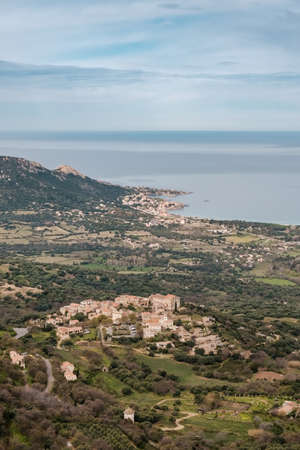 Aerial view of a typical Corsican village