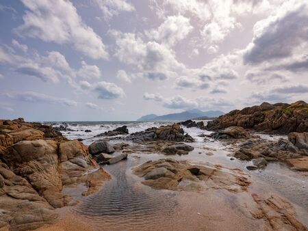 Rocks in Orri beach shoreline in the springtime. Sardinia, Italy