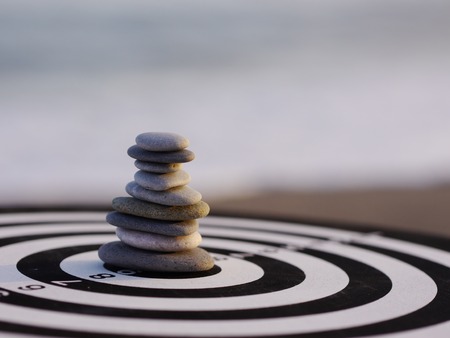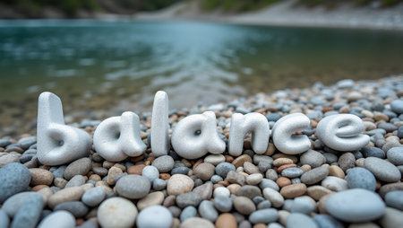 Zen concept of balance in white pebbles on riverbank