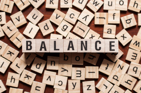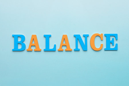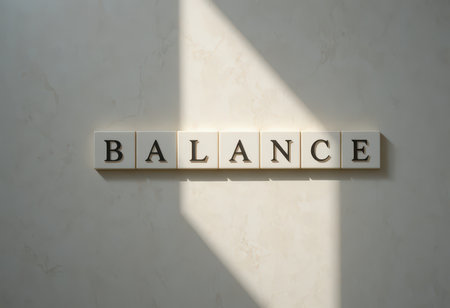 Inspirational quote about balance presented with letter blocks against a soft background. Perfect for wellness and motivational themes in various projects.
