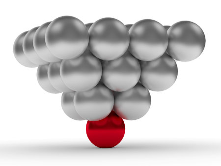 One gilded ball is balanced on a swing by several metal balls. 3D rendering. minimalism. abstraction. balance concept. leadership. Not like everyone else