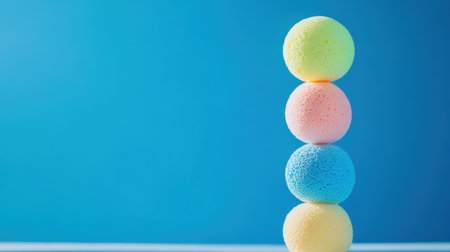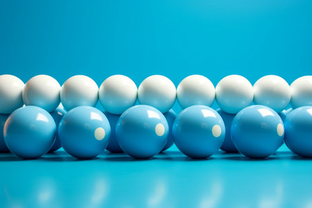 Small colored balls, red and yellow, on a blue background, placed in line, space for text