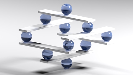 Geometrical elements on balance. Impossible equilibrium. This is a 3d render illustration