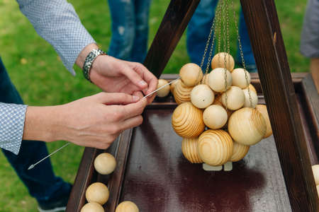 Wooden materials for solving puzzles and problems . Training with natural materials. The blocks for the tower.