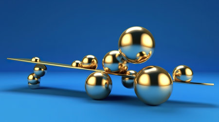 Balancing spheres in gold and black colors. Conceptual 3d render of mindfulness, relax and harmony.
