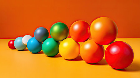 Bright colorful background with rolling balls along the paths. Minimalism and fashion concept. 3d illustration