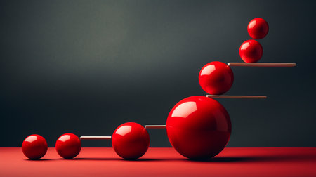Red Metallic Ball Induce to Movement Metallic Balls Mechanism Spotlighted on Black Background with Copy Space 3D Illustration