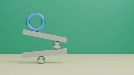 Balance concept sculpture. 3D illustration render with green background