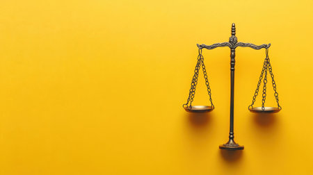 A striking image featuring a golden scale of justice on a vibrant yellow background, representing balance, fairness, and legal principles in a powerful visual statement.