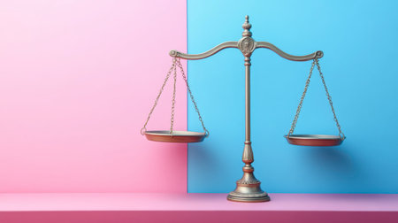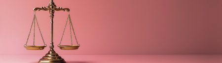 This image features an elegant balance scale on a soft pink background, symbolizing justice and law themes. It captures the essence of fairness and equality.