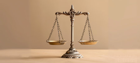 Ornate antique balance scale representing justice, fairness, and equality against a neutral background