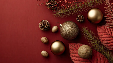 Modern minimalist holiday layout mixing red and gold tones with perfect symmetry.