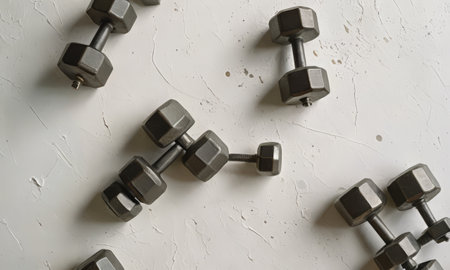 Dumbbells on a white background. View from above.