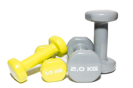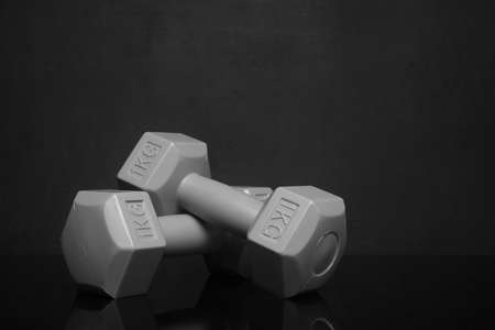 2 kg dumbbells isolated on dark background - home fitness and workout.